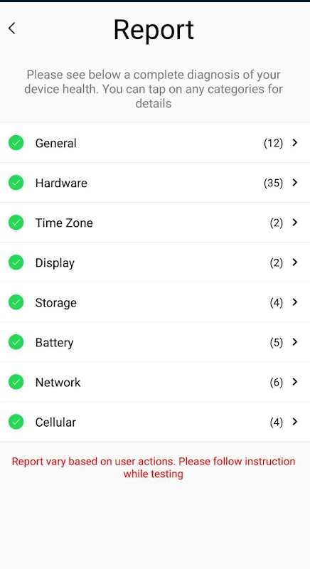 Hızlı Test uygulaması sadece birkaç dokunuşla telefon / cihaz sağlığını test eder.