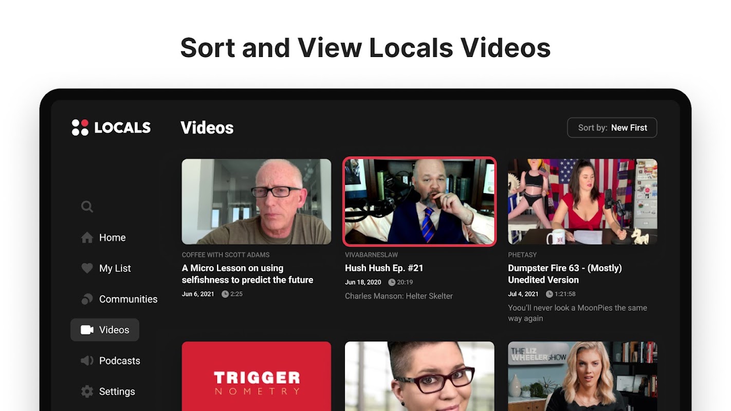 LocalsTV uygulaması, en sevdiğiniz içerik oluşturucu videolarına ve podcast'lerine doğrudan erişim sağlar. İçeriği büyük ekranda izleyin ve dinleyin ve içerik ile topluluk video ve podcast teklifleri arasında kolayca gezinin. LocalsTV, içeriği satın almadan önce önizlemenize ve ayrıca birden çok topluluk ve içerik oluşturucudaki ücretsiz içeriği görüntülemenize olanak tanır. En sevdiğiniz içeriği daha sonra Listem'de görüntülemek üzere kaydedin ve belirli videoları ve podcast'leri bulmak için Arama işlevini kullanın.