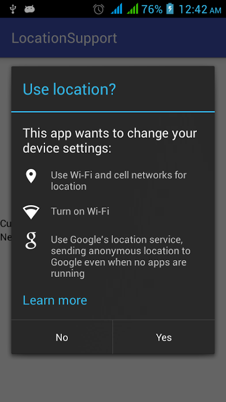 Yer Destek: Google'da sarıcı konumu için hizmet oynamak GooglePlayServiceLocationSupport kütüphanenin Demo uygulaması.