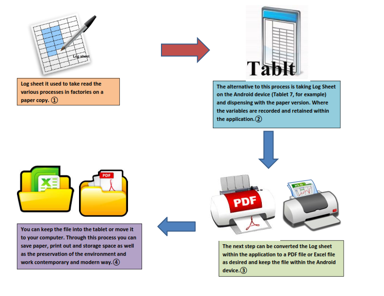 All variables are taken on the application and then can convert these variables to PDF or Excel file and the file is saved in the tablet.