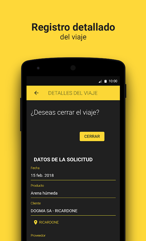 El usuario de la aplicación puede aceptar, rechazar y cerrar los viajes asignados completando la información requerida en la pantalla.