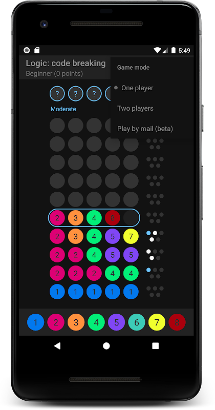 Aynı cihazda oynayarak veya uzaktan oynamak için Postayla Oyna'yı kullanarak Logic: kod kırma çok oyunculu oyun modlarından birinde bir arkadaşınıza veya aile üyenize meydan okuyabilirsiniz.