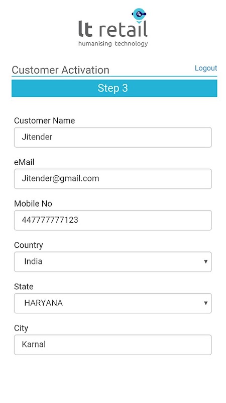 3) müşteri bilgilerini girin (isim e-posta, cep telefonu numarası ülke devlet şehir adresi ve müşteri aktivasyon sayfa ve basın pin kodu geçin.