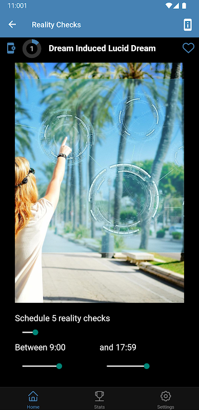 Gün içinde planlanmış gerçeklik kontrolleriyle hayallerinizin farkındalığını artırın. Ekstra bir meydan okuma ve daha fazla XP için, gerçeküstü bir şeyle karşılaştığınızda bir gerçeklik kontrolü gerçekleştirme niyetini belirleyin. Bunu yapmayı hatırladığınızda görsele dokunmanız yeterlidir.
