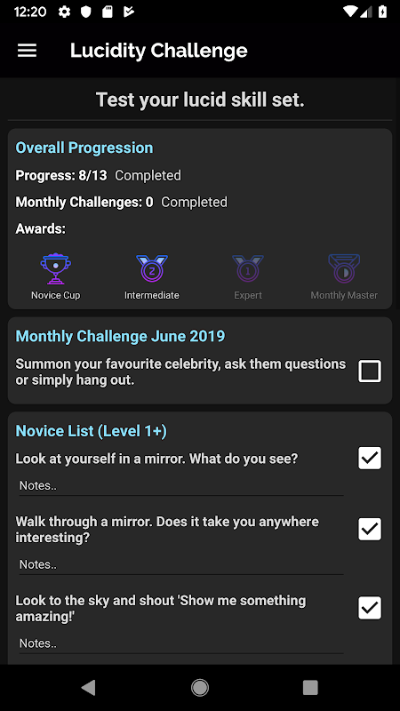 Rüya günlüğü aktivitenizi temel alan benzersiz bir seviyelendirme sistemi, zaman içindeki büyümeyi ölçer. Kapsamlı araçlar, eğitimler ve hatırlatıcılar berraklığa giden yolda sizi destekler.