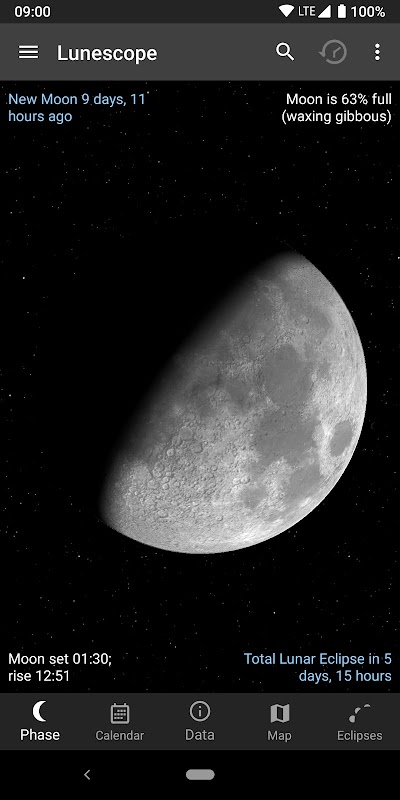 Bir aşamadan daha fazlası: ay haritası, tutulmalar, takvim, yükselme / ayar zamanları ve daha fazlası!