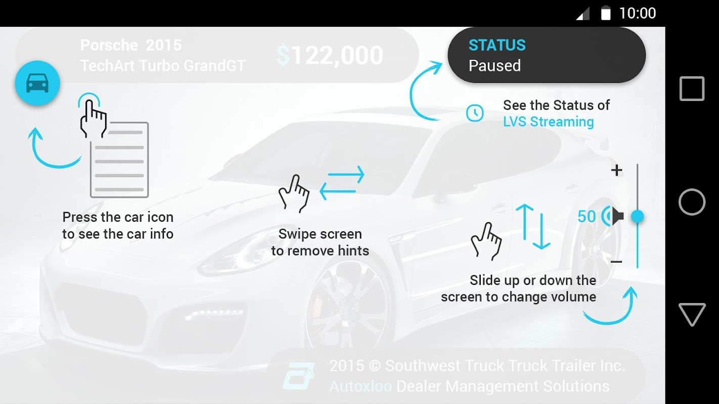 Feel free access to live video from your Android device with Autoxloo LVS Viewer application. Now it became easier to take a look at a specific car through video tour. With our application your Android device will provide video straight from the dealership and share its vehicles without dilemmas. Download LVS Viewer and feel the power of video.