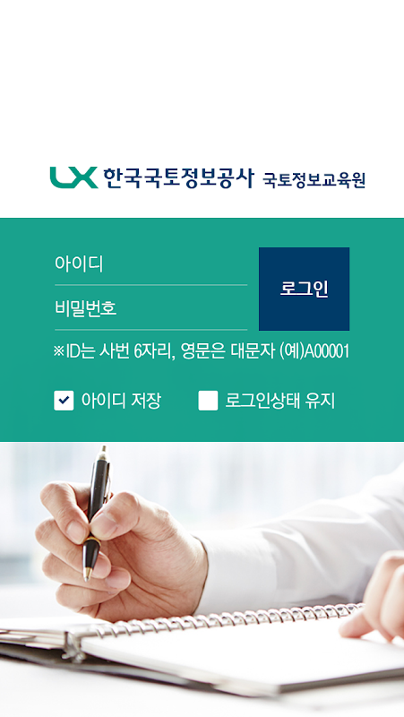 PC환경의 LX 한국국토정보공사 국토정보교육원(http://lx.hunet.co.kr)의 아이디와 비밀번호로 로그인 가능하며, 주요 서비스를 본 모바일 앱에서도 사용하실 수 있습니다.