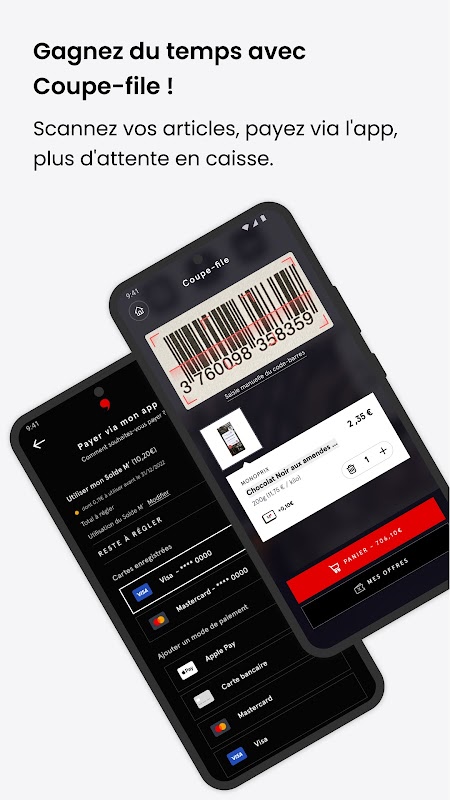 M' Monoprix mobil uygulaması, çevrimiçi veya mağazadaki alışverişlerinizi kolaylaştırır.