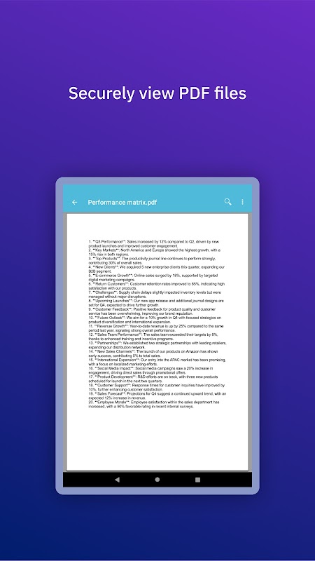 IBM MaaS360 Viewer, IBM MaaS360 tarafından sağlanan belgeleri ve medyayı Android cihazlarda görüntülemek için son derece güvenli bir yol sunar.