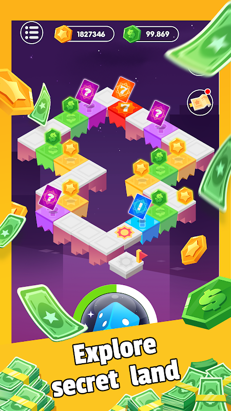 - Roll the dice to advance and get rewards on the map.