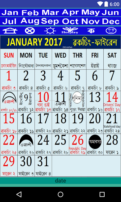 Manipuri lunar calendar for 2017-2019. It is just like traditional Manipuri calendar.