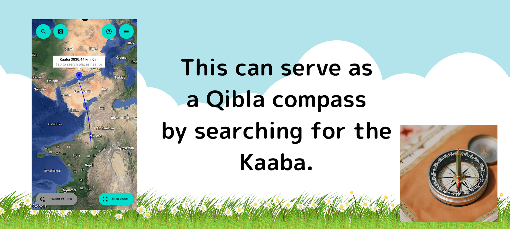 Bu aynı zamanda Kabe'yi arayarak kıble pusulası görevi de görebilir.