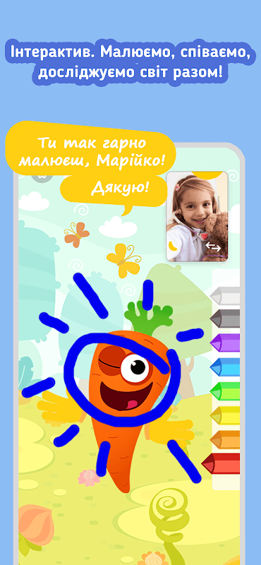 Etkileşimli bir mobil uygulama aracılığıyla her yerde ve uygun bir zamanda egzersiz yapın. Akıllı telefon ekranındaki karakterle çizim yapmak, oynamak, etkileşim kurmak için sadece internete ihtiyacınız var!