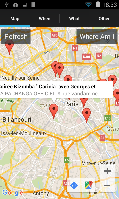 If you find a bug or your dance party is not referenced, please let us know on our facebook page (mapdance.com or http://facebook.com/mapdance.info ), we will try our best to solve the issue.