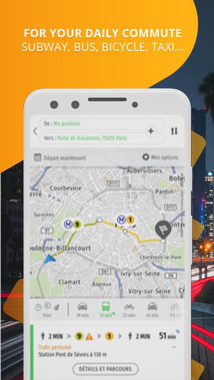 - Déroutes araba, bisiklet ve yaya için optimize edilmiş.