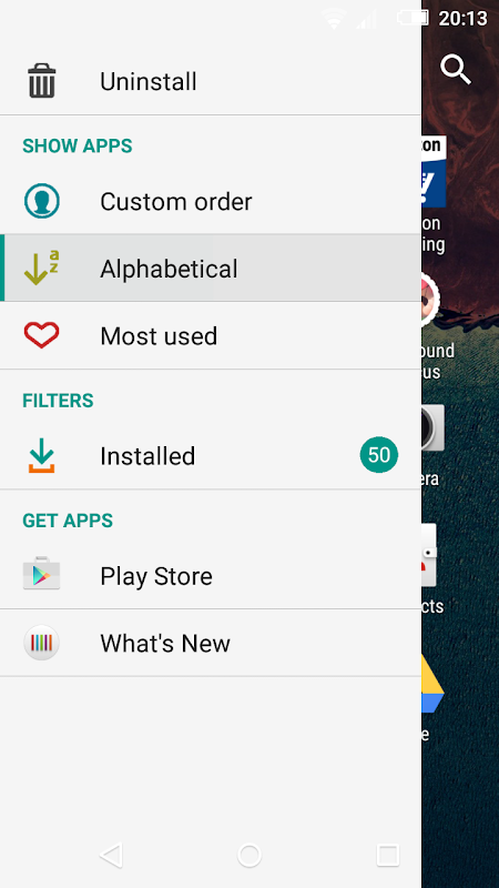 a navigation bar and default colors completely identical to those of stock Android, new App Drower colors inspired by the light interface of Android and the new, beautiful wallpaper from Android Marshmallow. Also, applications not optimized for Material Design, such as Facebook, will feature black status and navigation bars.