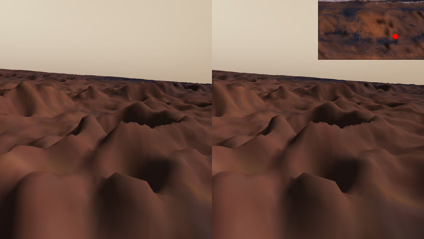 Tüm Mars peyzaj kılmak için, düşük çözünürlüklü veriler kullanılır.