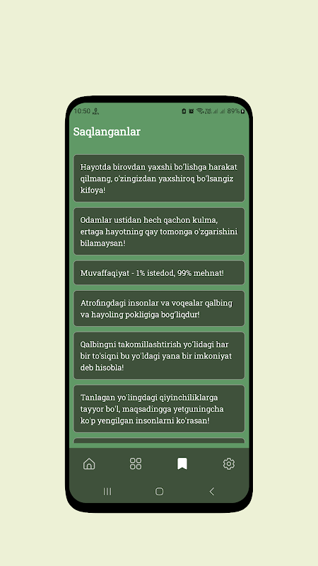 Hayotga tegishli eng yaxshi maslahatlar ve fikrlarni o'z ichiga olgan ilova.