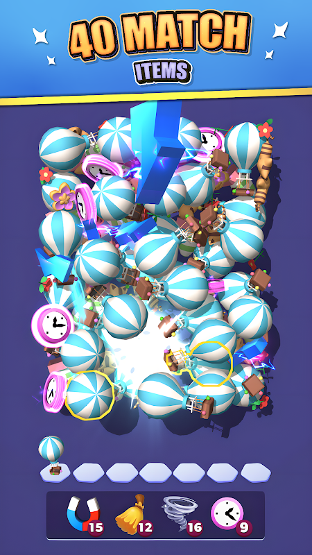 3D bir dünyada nesneleri eşleştirin! Bu eşsiz Match3D oyununda zamana karşı yarışın! Seviyeleri tamamlamak için renkli ve ayrıntılı 3D nesneleri eşleştirin, ilerlemenizi hızlandırın ve zorlukların üstesinden gelin. Zorlu seviyelerde avantaj elde etmek için güçlü güçlendiriciler kullanın.