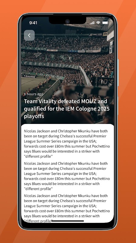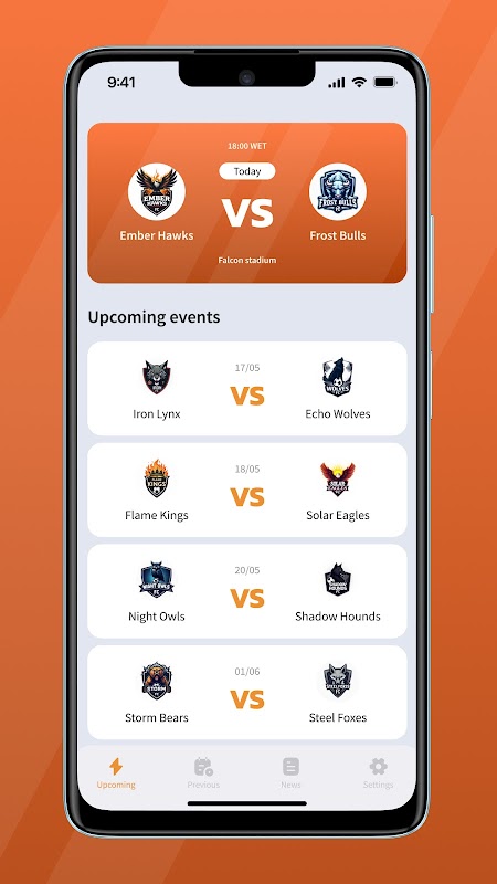 Yaklaşan etkinlikleri ve önceki maçlardan istatistikleri takip etmek için kullanışlı bir spor uygulaması.