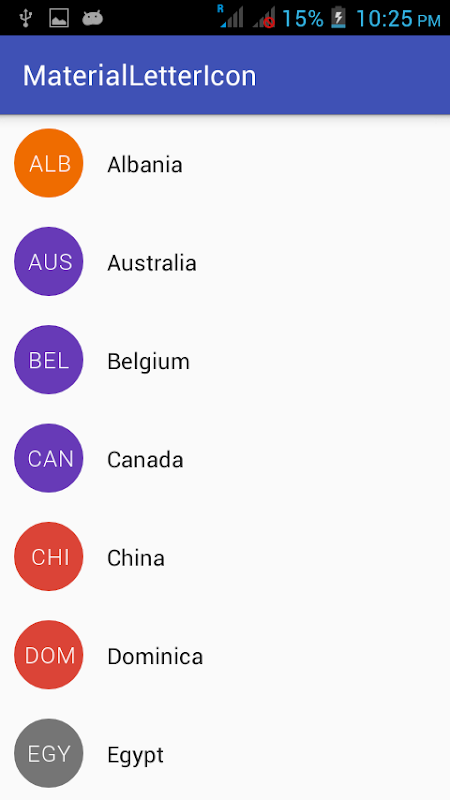 Malzeme Icon Library ImageLetterIcon Library demo uygulamasıdır.
