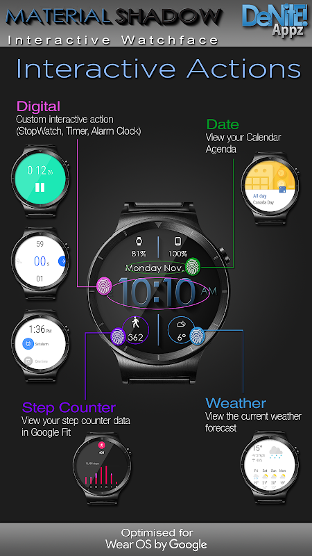Bu tamamen özelleştirilebilir etkileşimli HD Wear OS Saat Yüzü, Saat Widget'ı ve Canlı Duvar Kağıdı, bileğinize ve Başlatıcınıza klasik bir zarafet getiriyor. Özellikler, özel komplikasyonları, pil seviyelerini, hava koşullarını, adım sayacını, renk seçiciyi ve tarih bilgilerini içerir. Saat kadranını istediğiniz görünüme göre yapılandırmak için mobil cihazınıza bir ayarlar uygulaması da yüklenecektir. Herhangi bir rengi seçin ve kendinize tamamen özel bir görünüm yaratın! Wear OS saatiniz yok mu? Sorun değil! Başlatıcınızda saat widget'ını veya Canlı Duvar Kağıdını kullanabilirsiniz!