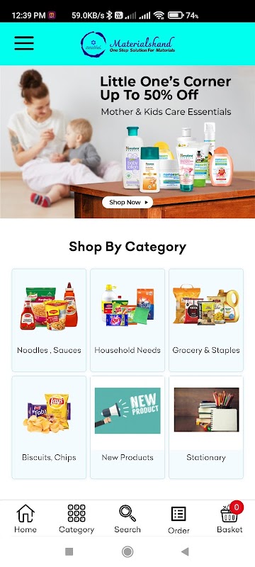 Yiyecekleri ve günlük ihtiyaçları dağıtmak için çevrimiçi alışveriş uygulaması.