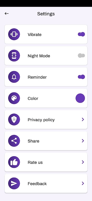 Having Night Modes features with 7 Different App's Colors, Reminder options.