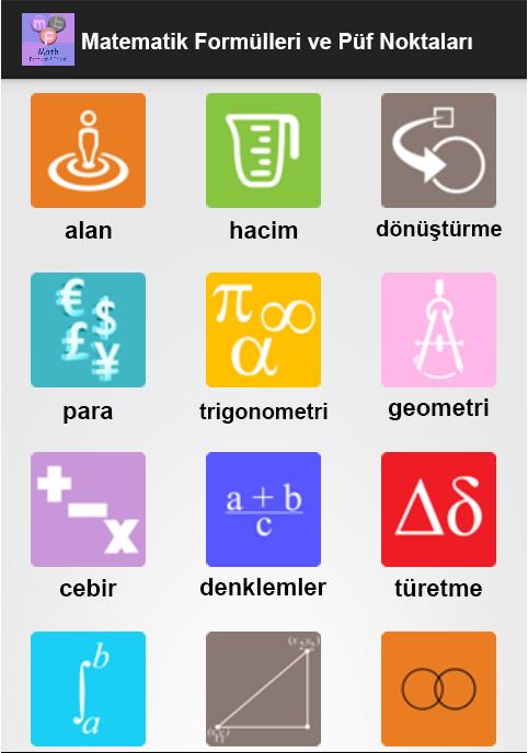 Bu mükemmel bir uygulama matematik tüm temel formülleri sağlamasıdır.