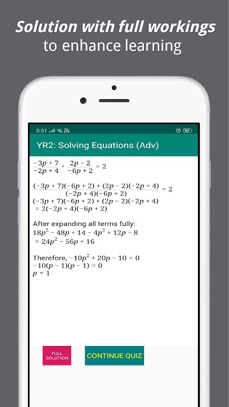For each question, student needs to select one out of three answers. The correct answer will be shown to the students. Having problem getting the answers? Students can view the full solution included FREE in this APP.