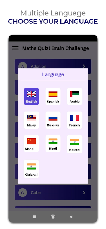 ✪ Multilingual Game: supports multiple languages i.e., English, Spanish, Arabic, Hindi, Malay, Marathi, Gujarati