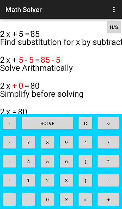 Math Solver is a free application designed to help people understand how to solve both algebraic and regular equations, in a way that a standard calculator cannot.