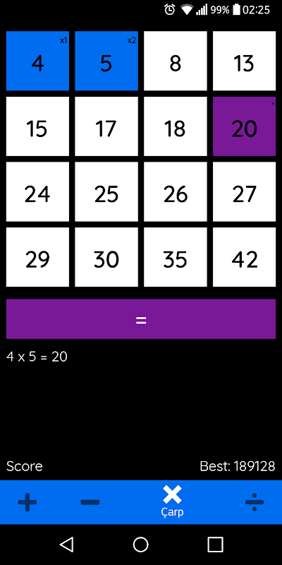 A game to make calculation of random given numbers with mathematical operation,