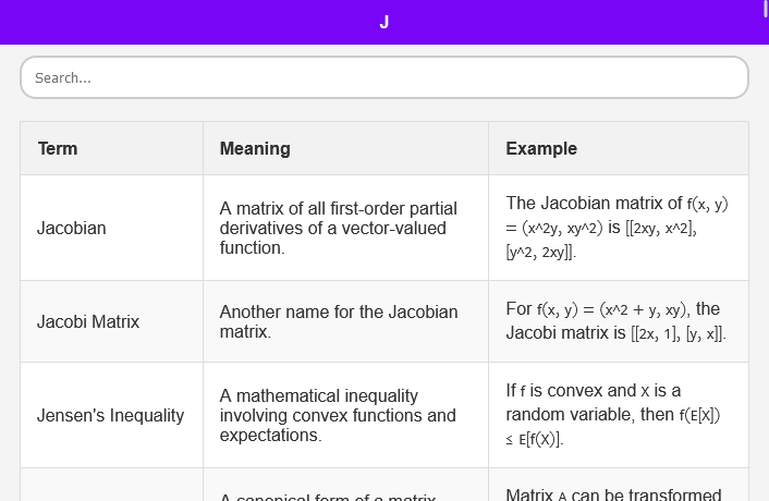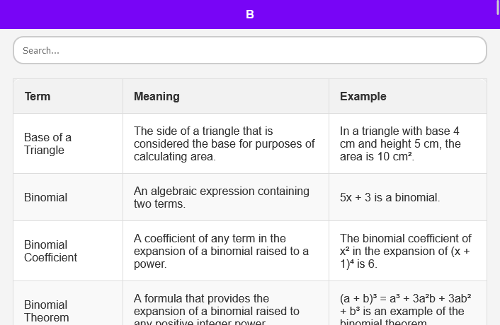 Bir matematik sözlüğü uygulaması arıyorsanız doğru yerdesiniz. Bu uygulama size en önemli ve en sık kullanılan matematik formüllerini, terimlerini, anlamlarını ve örneklerini sağlayacaktır.