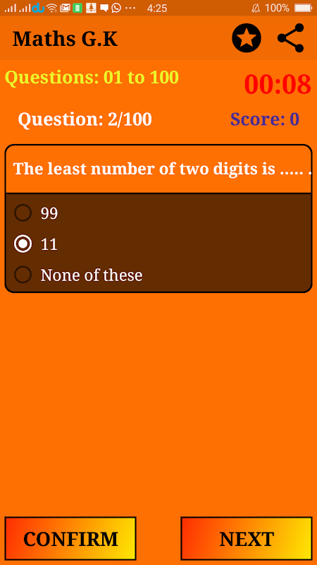 Bu uygulamada 550'den fazla Matematik Soruları ve cevapları alacaksınız 3 seçenekle, eğer doğru cevabı seçerseniz skor sayılacak ve yeşil renkte cevap verilecek ve kalan 2 seçenek Kırmızı renk alacaktır. Bu, Matematik bilgisine sahip olmayı seven kişi için en iyi uygulamalardan biridir.