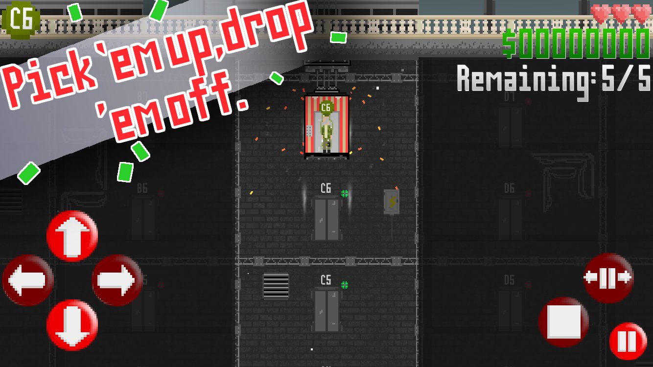 As part of the E.T.U. (Elevator Technicians Union) you've been called up to control the Toombervelt's new and advanced 4-way elevator system. Being fast is everything as the residence don't have much patience.