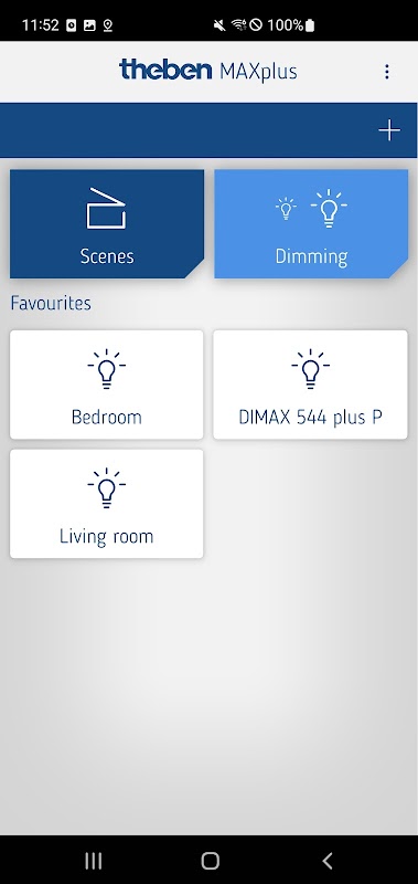 MAXplus, DIMAX 544 plus P gömme montajlı üniversal dimmerlerin uygun programlanması ve kontrolü için Theben'in akıllı telefon uygulaması. Uygulamanın başlatılması ve kullanılması sezgisel ve açıklayıcıdır.