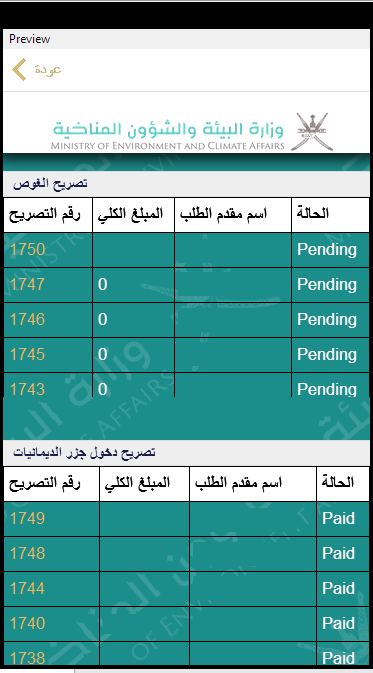 Mobile Application for Ministry of Environment and Climate Affairs, Sultanate of Oman for applying for permits like Diving and for visit to Dimaniyat Islands.