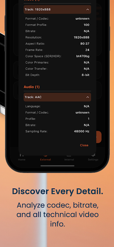 📊 Ayrıntılı Medya Bilgileri: Meraklı zihinler ve profesyoneller için MediaCore, içeriğinize derinlemesine bir bakış sunar. Dosyanızın tüm teknik ayrıntılarını analiz edin: video ve ses kodekleri, çözünürlük, bit hızı, ses parçaları, altyazılar ve çok daha fazlası.