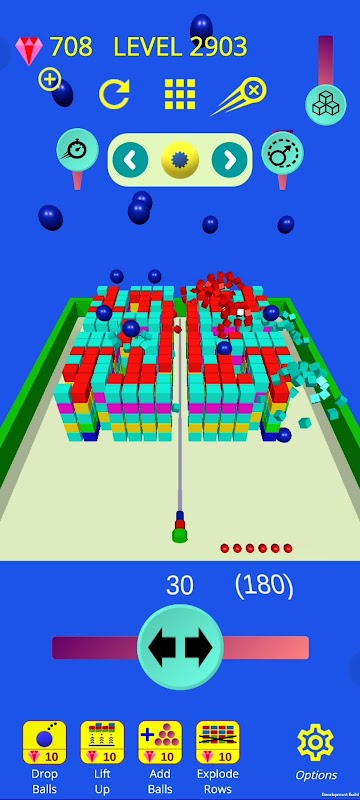 Explode all bricks and walls before they reach the bottom.
