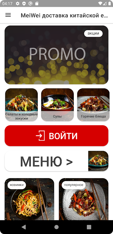 Sevdiğiniz ve yemeniz gereken şeyleri pişiriyoruz çünkü Çin yemekleri sadece mükemmel lezzetleriyle değil, aynı zamanda içeriklerindeki çok miktarda faydalı maddeyle de ayırt ediliyor. Gerçek zevk alın - MeiWei mobil uygulamasını seçin.