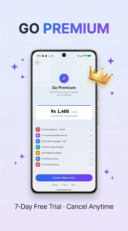 Kriz anında gerçek zamanlı olarak bir yapay zekâ ebeveyn koçuyla konuşun. Anı yönetirken kulaklıklarınız aracılığıyla sakin ve uzman bir rehberlik alın. Yazmaya, okumaya gerek yok; sadece kulağınızda sabit bir ses.