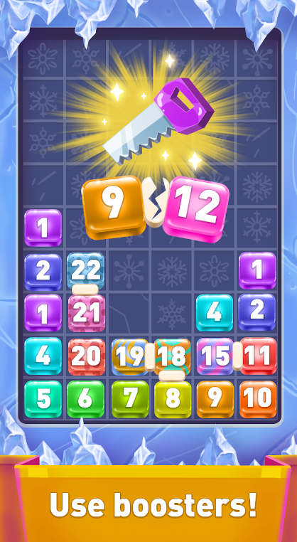 Merge Blocks: Numbers Puzzle, amacın giderek zorlaşan seviyelerde ilerlemek için eşleşen sayılarla blokları birleştirmek olduğu büyüleyici bir bulmaca oyunudur.
