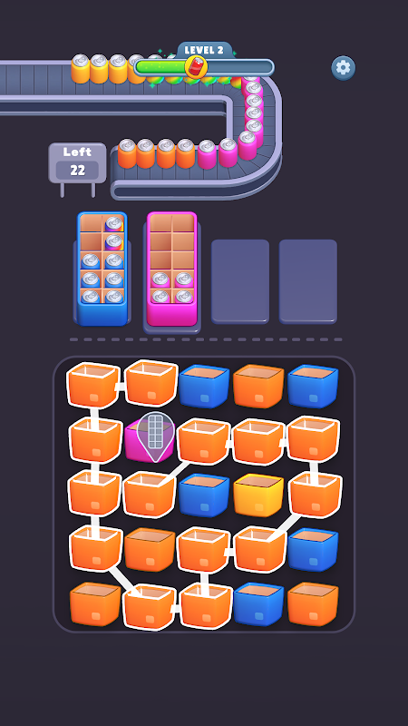 Bağlama, birleştirme ve planlamanın merkez sahne aldığı bu benzersiz bulmaca oyunuyla strateji ve yaratıcılık dünyasına adım atın. Amaç basit ama ilgi çekici: Daha fazla eşya alabilen daha büyük kutular oluşturmak için aynı renkteki kutuları birbirine bağlayın ve birleştirin. Ancak daha fazlası var: Nihai hedefiniz, hareket eden bir konveyör bandından tüm renkli kutuları toplamak ve her seviyeyi başarıyla tamamlamak için bu büyüyen kutuları stratejik olarak yönetmektir.