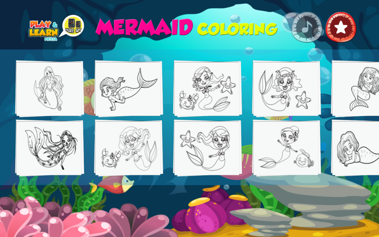 * Deniz kızı boyama sayfaları ile öğrenmek ve oynamak için kolay.