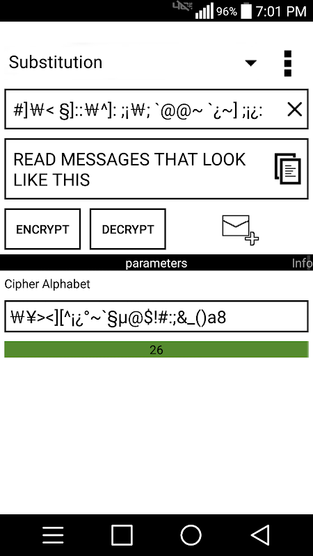 Arkadaşlara kodu kısa mesaj gönderin. Şifrelere kullanarak şifrelemek ve deşifre metinleri.