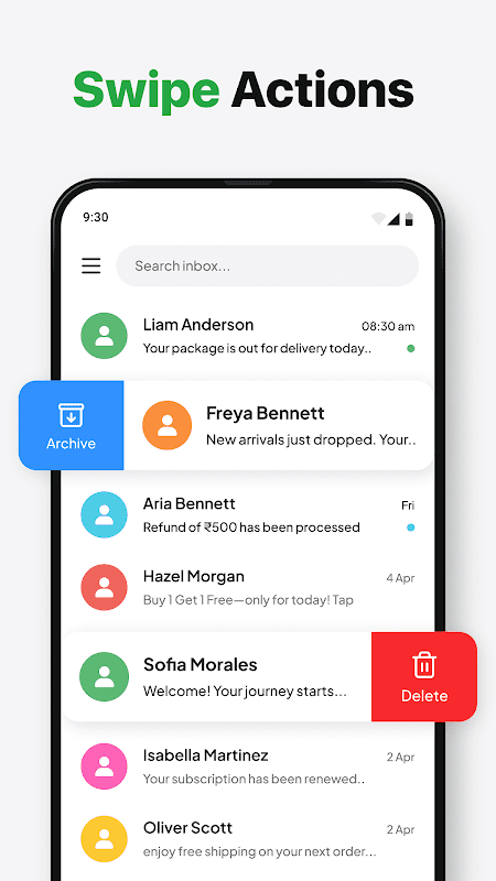 ↔️ Kaydırma İşlemleri – Basit kaydırma hareketleriyle mesajları hızlıca arşivleyin veya silin.