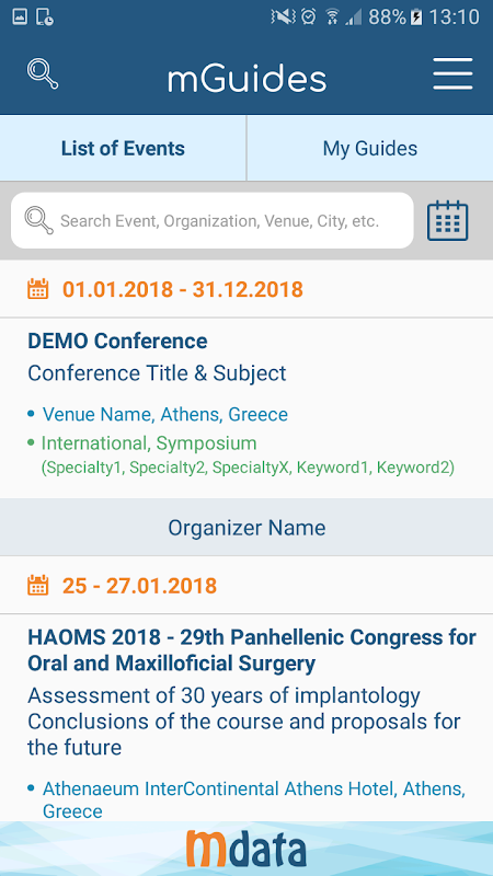 mGuides tıbbi konferans ve markalı kılavuzları için çok olay uygulamasıdır.