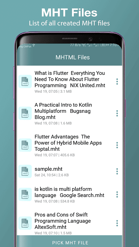 Bazen çok yararlı makale veya web sayfası bulduk, ancak tam olarak okumak için vaktimiz yok, ancak şimdi endişelenmeyin Mhtml görüntüleyici veya Mhtml okuyucu uygulaması sorununuzu çözecek ve artık herhangi bir web sayfasını mht formatında kolayca kaydedebilirsiniz. Çevrimdışı kullanım ve boş zamanınız olduğunda istediğiniz zaman okuyun. Ayrıca mht'yi kolayca pdf'ye dönüştürebilir ve yazdırabilirsiniz.